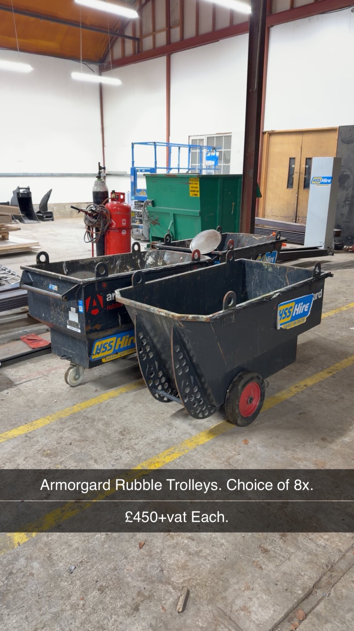 Used Armorgard rubble trolleys for sale, ideal for transporting heavy materials, rubble and waste on construction sites across Northern Ireland, Belfast, Derry, Mid Ulster and throughout the UK. These second-hand / ex-hire site trolleys are built for durability and designed to improve efficiency and safety when moving materials around site.