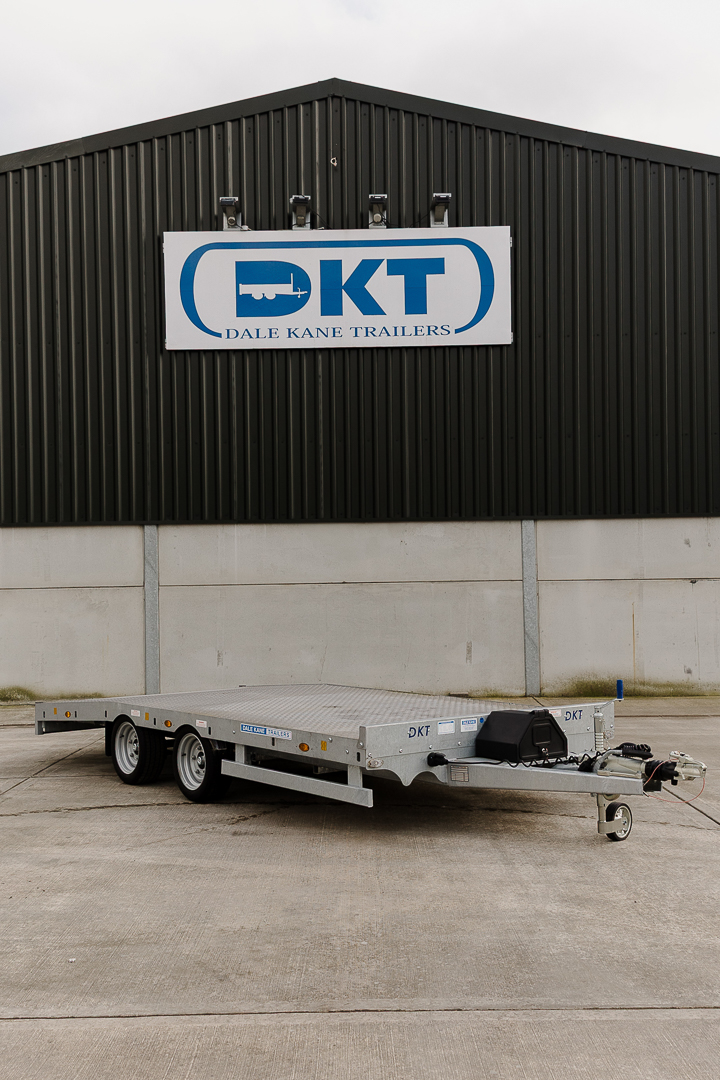 Dale Kane low loaders are heavy-duty trailers designed for transporting machinery, vehicles, and oversized loads.